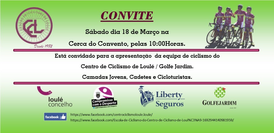 o ano de confirmação desse mesmo projeto, desta forma o Centro de Ciclismo de Loulé tem a honra de convidar todos os sócios, patrocinadores e amigos para se juntarem a nós dia 18 de Março pelas 10:00 horas na Cerca do Convento em Loulé.